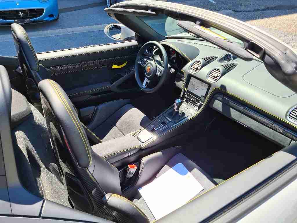 Nous entrons à l'intérieur et là... Gros coup de coeur avec ce superbe Spyder en couleur Craie, équipé des freins PCCB et un superbe intérieur avec les baquets carbones type 918 en cuir/alcantara noir et surpiqûres jaunes (pour ceux qui n'avait pas encore compris, j'ai un gros faible pour cette couleur d'intérieur