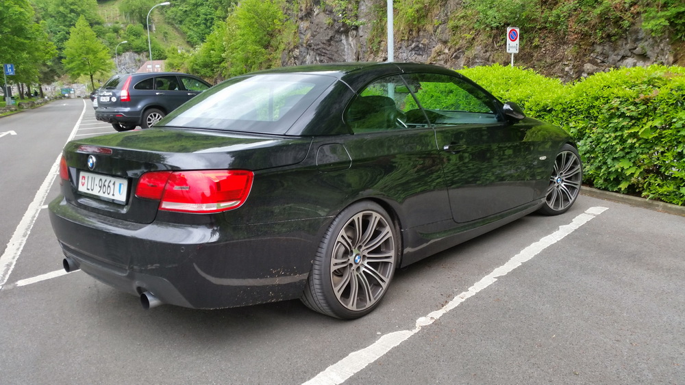 On est allé tester une 320i cab (bien optionnée: kit M, GPS Pro etc.) ce WE et question compatibilité avec 2 enfants en bas ages ça donne: