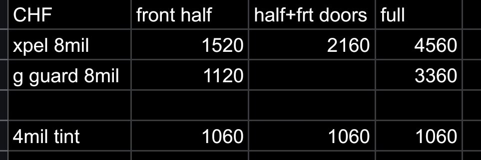 Ensuite il y a la question de la marque du film, et de la garantie. XPEL offre six ans, mais avec l'obligation de deux services annuels sur du sombre (4 sur du clair !). G Guard est une société locale/régionale qui achète son film TPU au Japon.