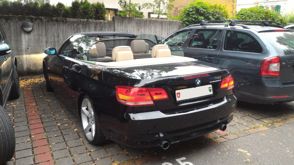 Récemment j'ai enfin décidé d'évoluer (la pompe à eau de la 328i m'ayant un peu forcé la main niveau timing), et ai acquis une 335i cabrio - je voulais le mouton à cinq pattes (moteur sympa, cabrio hard-top, 4 presque-vraies places) et je crois bien avoir trouvé - on l'a depuis une semaine et on l'adore. Voir photos ci-dessous. Tout au plus, je vais essayer de faire retoucher la peinture, qui a quelques petits défauts mineurs.
