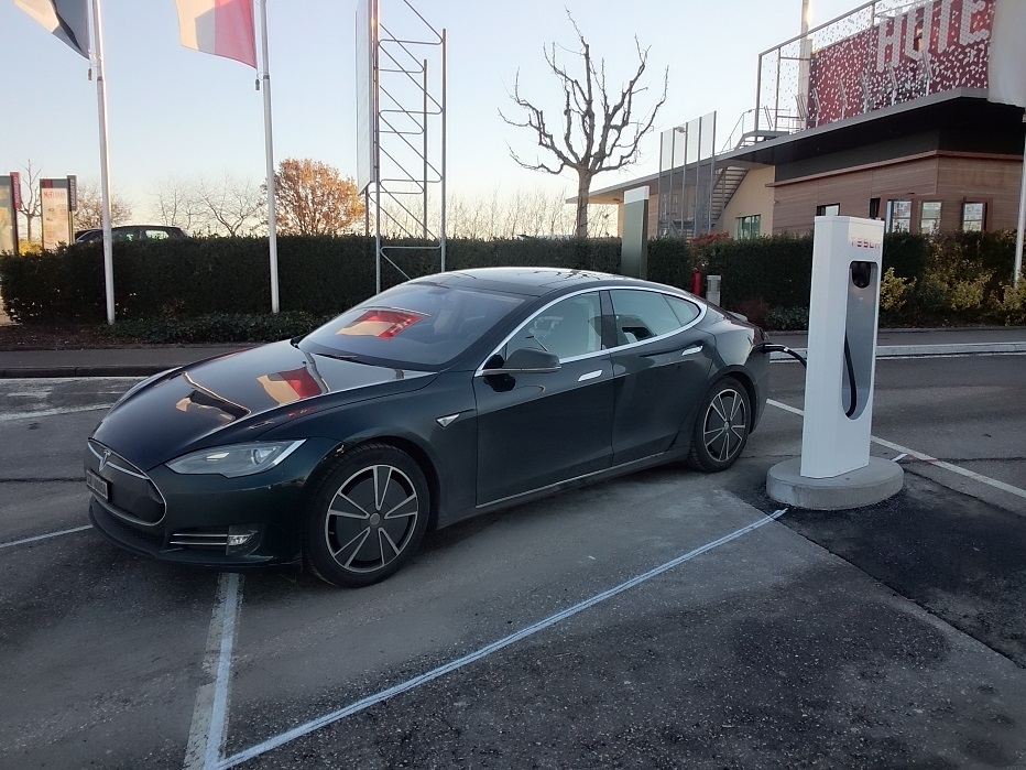 Premier trajet "longue distance" demain, Brunnen-Genève, 300 kms, avec arrêt au nouveau Supercharger de Lully idéalement situé. Je suis rentré du boulot ce soir avec 50kms d'autonomie restante, impossible donc d'envisager ce trajet en rechargeant seulement chez moi. C'est donc l'occasion de tester la nouvelle station de recharge à quelques minutes à pied de chez moi via le cable Type 2 commandé chez Alpiq. La procédure est (presque) un jeu d'enfant, je branche le câble dans la station, l'autre bout dans la voiture et envoie un SMS au numéro indiqué sur la borne. Au bout de 3 tentatives, ça marche, le SMS me sera facturé 7CHF pour maximum 4 heures de charge (5CHF avec abonnement, faudrait que je regarde les conditions). Ca tombe bien, il ne faut "que" 4 heures pour charger la Tesla à 90%, ça me revient donc moins cher que chez moi. La bête est maintenant au chaud, départ demain matin! Et pour ajouter à l'excitation, ce sera le premier road trip avec le bébé...