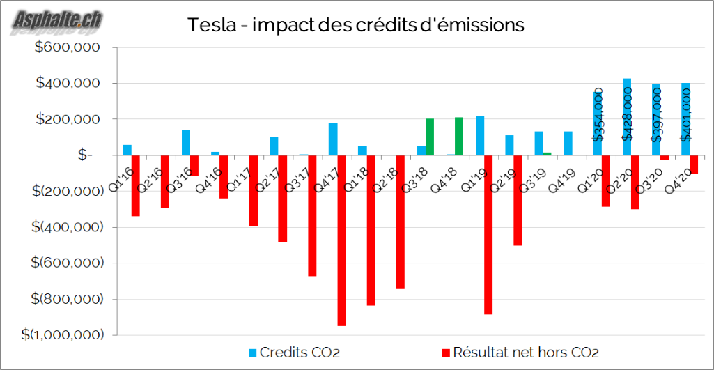 Là il est important de bien lire. Tout d'abord, l'article de Bloomberg dit bien que le CS est très au dessus du concensus = ce que pense le marché globalement 2M vs 1.3M. Ensuite, l'analyste de CS fait un statement général = comme les normes UE sont plus strictes, Tesla va en vendre plus. C'est assez simpliste comme raisonnement car ca n'intègre absolument pas le fait que les constructeurs ont des plans pour réduire les émissions. Et on voit bien que ces plans, ils se produisent cf le groupe VW. Ok, eux ils ont raté leur cible cette année ... de 0.5g CO2. Et ils n'ont pas acheté à Tesla de crédits, ils ont préféré payer l'amende. On peut donc en conclure que le raisonnement articulé par le CS ne permet pas de conclure. Ca ne veut pas dire que Tesla ne vendra pas pour 2M de crédits en 2021, ca veut dire que s'ils le font, le raisonnement de l'analyste ne sera pas l'explication ou du moins sera au mieux une explication très partielle.LaRascasse a écrit : ↑06 févr. 2021 16:30Et ces débutants chez CS qui voient l’inverse...