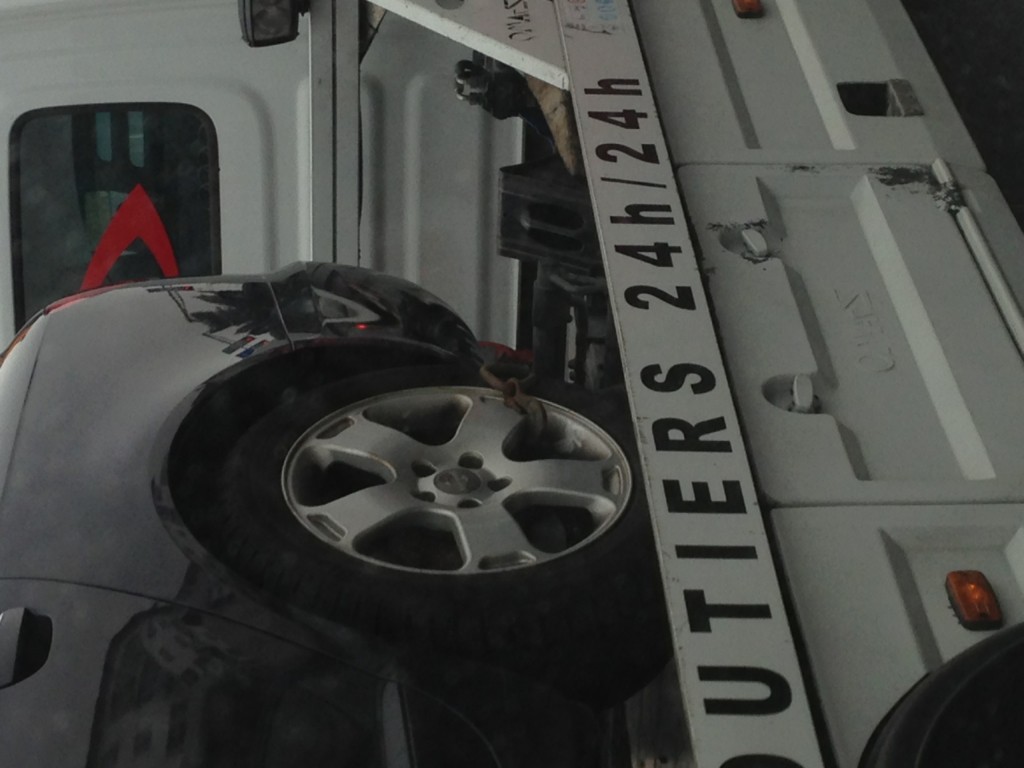 Ce qui était plus surprenant c'est la façon dont le dépanneur a attaché la voiture aux jantes sans aucun ménagement, le propriétaire apprécieras certainement !