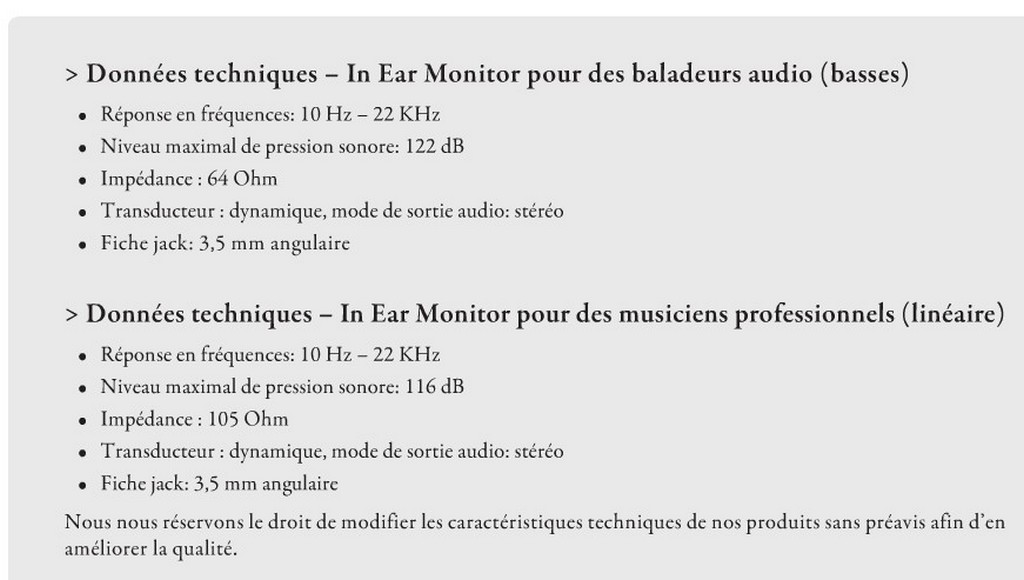 Je suis allé cet après-midi dans un magasin Neuroth (neuroth.ch). On a notamment parlé des écouteurs intra "moulé"