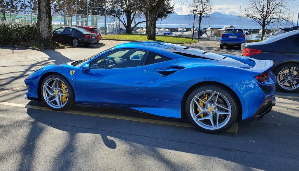 Quelques photos de la chose, très belle peinture bleue, en option (10kCHF). Pas encore pret a renoncer a mon Rosso Corsa, mais je dois dire que ce bleu est sublime.