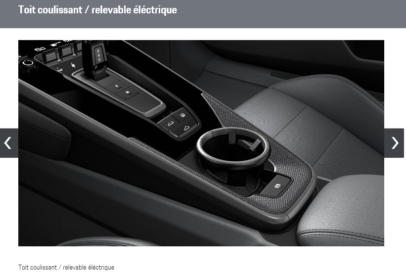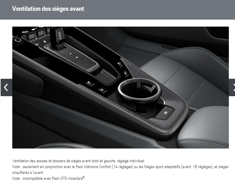 Dans le configurateur, si tu ajoutes l'option des sièges ventilés, l'aspect de la partie pentue devant le porte-gobelet change d'aspect. Est-ce en raison de l'apparition d'une commande tactile? Peut-être.