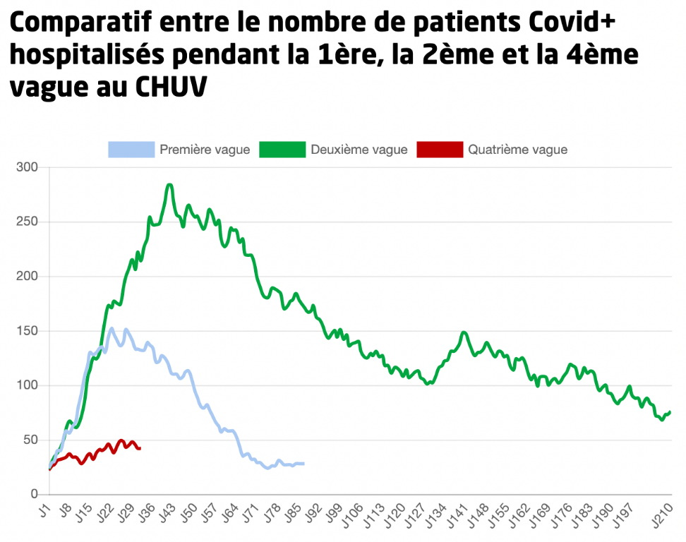 Le problème reste actuellement l'occupation des soins intensifs. En tant normal, un patient reste entre 2 et 5 jours. Avec le Covid, le temps aux soins intensifs est passé de 10 à 15 jours. Ce qui pose d'autres soucis, surtout que pendant les deux premières vagues, les opérations électives ont été toutes stoppées (avec comme conséquences l'arrêt de traitement de certains cancers, de certains problèmes cardiaques), on a "créé" des places de soins intensifs (je parlerais plus de places de survie) dans des garages ou des couloirs en prenant un maximum de personnels dans tous les services possibles vu que les autres activités de l'hôpital étaient quasiment à l'arrêt. Chose qu'on ne peut plus faire aujourd'hui (même si certains cantons ont dû freiner les opérations électives).