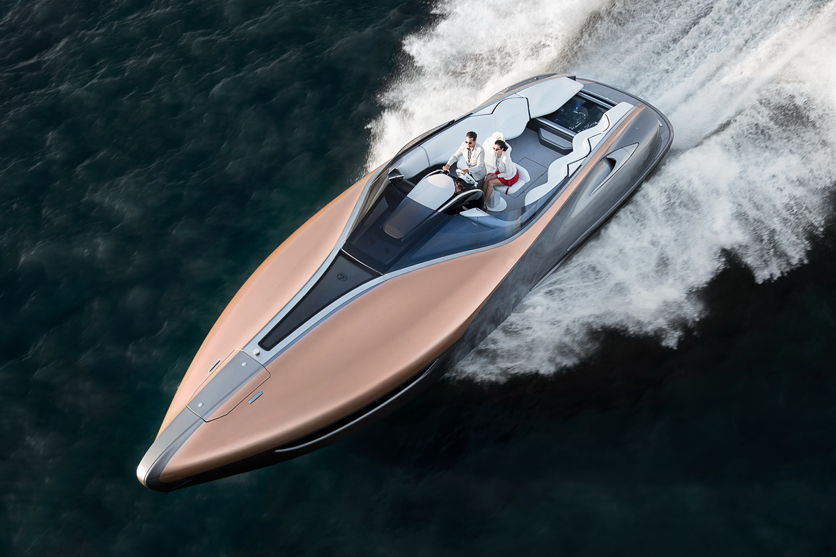 Ils se sont au moins la peine d'y loger deux moteurs Lexus, des V8 de 5.0-litres V8 dérivés du 2UR-GSE des Lexus RC F coupe, GS F et LC 500. Chaque moteur développe 446 ch DIN, permettant aux beautiful people à bord d'atteinte 43 noeuds, ce qui doit taper grâve vu que l'entier de la coque est en carbone, ce qui permet d'économiser une tonne par rapport à une construction en fibre traditionnelle.