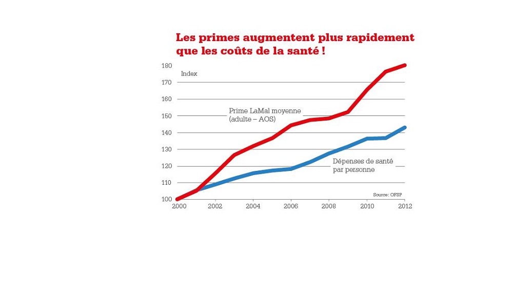 La prime moyenne était de 173.-- en 1996 contre 387.-- en 2012, soit 124% d'augmentation.