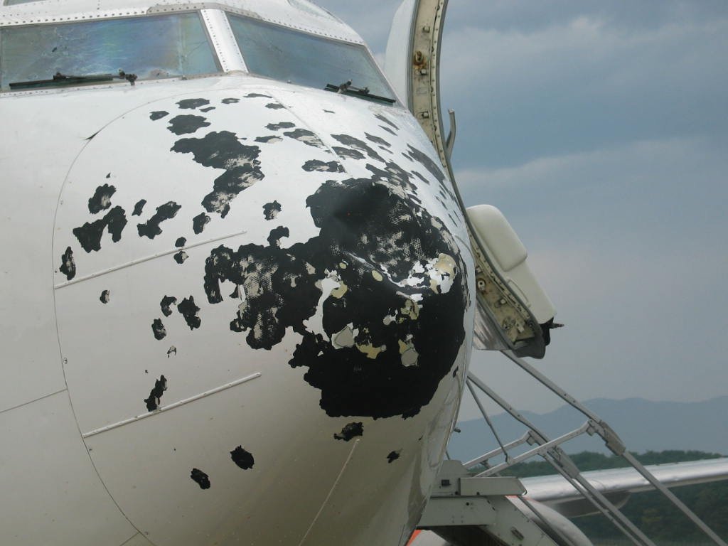 Ca me rappelle l'incident (qui avait failli finir en drame) du 747 qui avait traversé de nuit un nuage de cendres (indétectable aux radars (à l'époque en tous cas)) de volcan, lui faisant perdre ses 4 moteurs et qui avait entièrement rendu opaque toutes les vitres des parebrises.