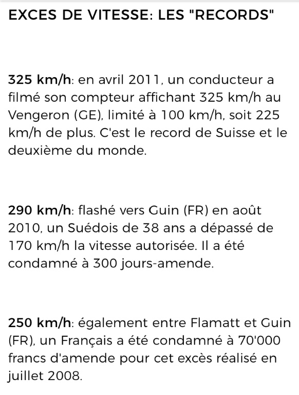 https://www.20min.ch/ro/news/romandie/s ... n-17231221Pour expliquer son geste, le gitan a affirmé avoir rencontré un soucis au niveau du compteur de vitesse de sa voiture. Selon ses dires, il n’aurait tout simplement pas fonctionné.