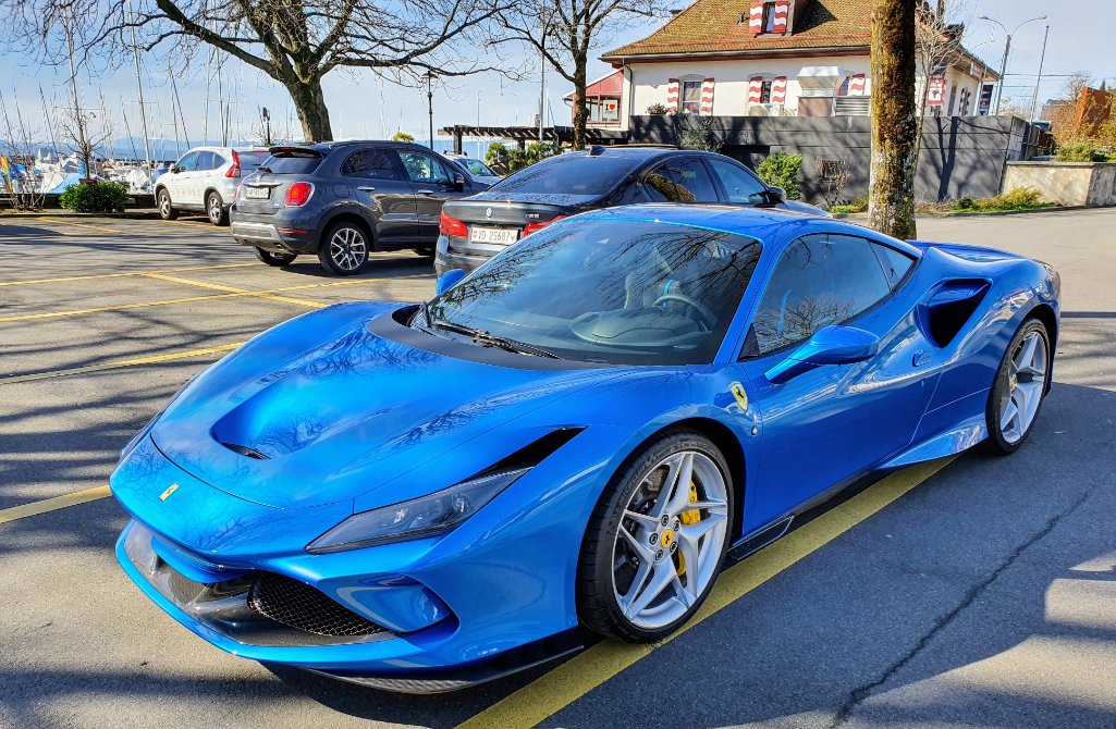 Quelques photos de la chose, très belle peinture bleue, en option (10kCHF). Pas encore pret a renoncer a mon Rosso Corsa, mais je dois dire que ce bleu est sublime.