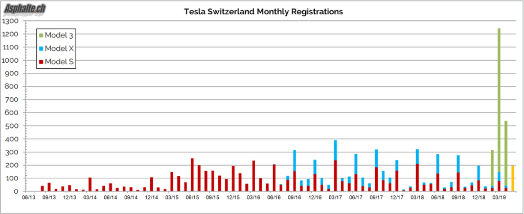 Tesla: immatriculations suisses Mai 2019