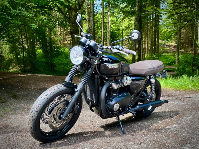 J'ai hésité avec la Nine T, mais j'avais peur que ca soit trop efficace, je cherchais une moto qui me bride naturellement. Donc la Bonneville avec ses suspensions saucisses est parfaite.
