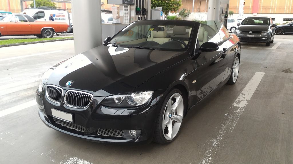 Récemment j'ai enfin décidé d'évoluer (la pompe à eau de la 328i m'ayant un peu forcé la main niveau timing), et ai acquis une 335i cabrio - je voulais le mouton à cinq pattes (moteur sympa, cabrio hard-top, 4 presque-vraies places) et je crois bien avoir trouvé - on l'a depuis une semaine et on l'adore. Voir photos ci-dessous. Tout au plus, je vais essayer de faire retoucher la peinture, qui a quelques petits défauts mineurs.