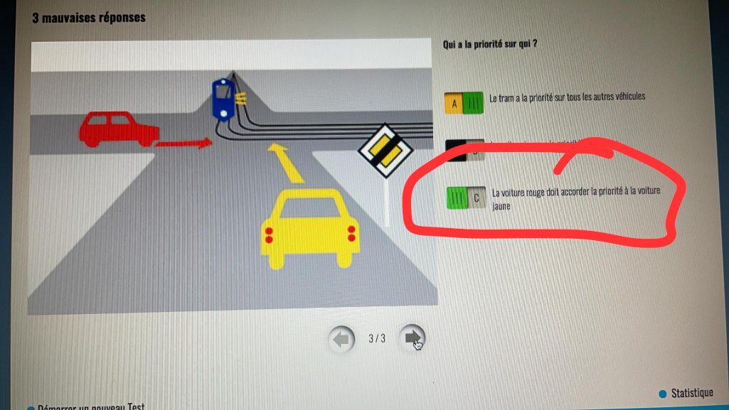 Oui il faut laisser passer le tram en premier (plusieurs réponses peuvent être cochées)