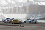 Par contre, j'adore l'ambiance des lieux. Ces gigantesques hangars de l'US Navy désafectés, le port d'Oakland et ses grues, le centre ville d'Oakland à l'est.