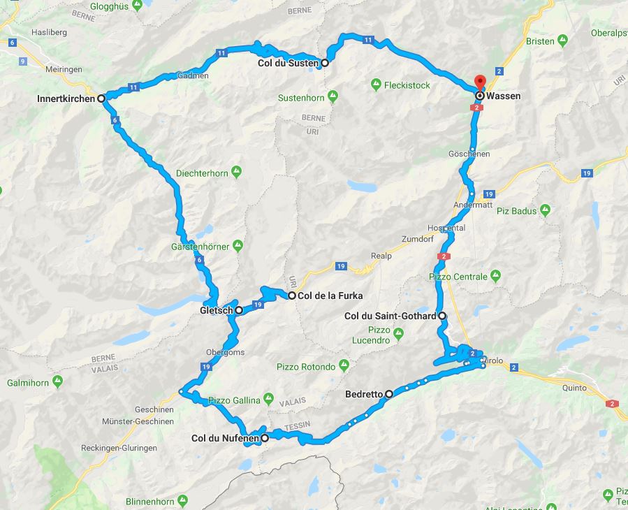 60 km de détour, mais c'est nettement plus fun. Perso j'évite le versant uranais de la Furka, c'est joli, mais la probabilité de se faire refaire le côté gauche par un bus slovaque ou un camping car hollandais est un peu trop élevée selon la voiture.