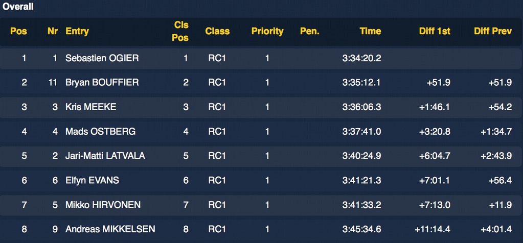 Ogier assure le scratch pour quelques 10emes devant Latvala.