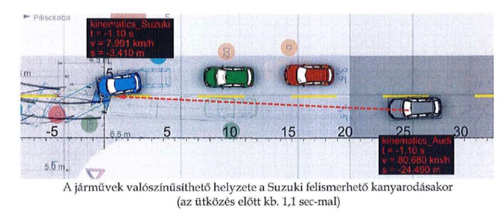 Après 1.5s, soit 1.1s avant l'impact le gars en Audi est à 80km/h, il a donc accéléré - alors qu'il s'approche d'une file à l'arrêt mais ne peut pas ne pas voir qu'il y a un véhicule, certe lent mais prioritaire, qui commence à tourner à gauche devant lui.