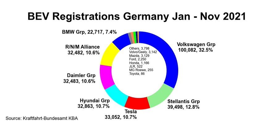 Je ne pensais pas que VW (même le groupe) aurait déjà un morceau pareil du marché BEV en 2021 dans leur pays si ancré au siècle passé de l'automobile.