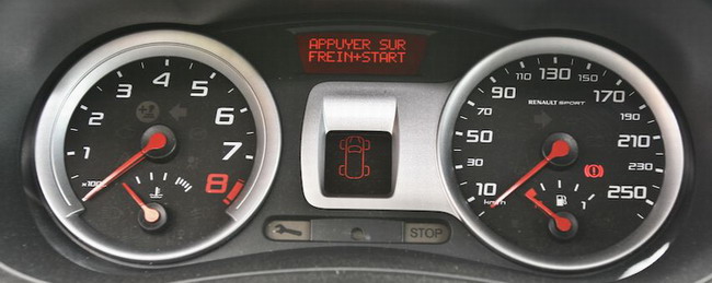 Pour revenir à la Clio RS “normale”, déjà très bien dotée de série, il existe quand même une multitude d’options dont une très pratique, la carte Renault “Keyless-Drive Hands-free” qui équipait notre modèle d’essai. Cette carte remplace l’habituelle clé de contact et permet l’ouverture et la fermeture de la voiture ainsi que le démarrage par simple pression d’un bouton, tout ça en gardant la carte dans votre poche, messieurs, ou dans votre sac à main, mesdames. Cette option et d’autres sont aussi disponibles sous forme de packs qui sont un ensemble d’options. Par exemple, le pack Grand Tourisme (2700 CHF) comprend la climatisation automatique (avec filtre à pollen), une boîte à gants réfrigérée, la carte Renault “Keyless-Drive Hands-free”, le volant réglable en profondeur, les phares xénon, les feux additionnels de virage (FBL), le capteur de pluie et de lumière qui automatise le fonctionnement des essuie-glaces et des phares, les vitres arrières teintées et un radio CD lecteur MP3. Globalement le prix de base ainsi que les options restent très compétitifs.