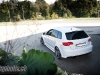 Le comportement de la RS3 est redoutable d’efficacité, offrant une motricité sans faille et permettant ainsi de bûcheronner avec bonheur dans les enchaînements sinueux sans trop se soucier des conditions d’adhérence. On sent les roues intérieures chercher et trouver du grip pour tenir des appuis serrés. Le système Quattro, avec un différentiel central à lamelles piloté électroniquement de type Haldex, est efficace et limpide dans ces conditions de route sèche. Je n’ai pas constaté de sous-virage particulier, les limites d’adhérence se traduisant par une dérive progressive des quatre roues. Il est probable que la monte pneumatique plus large à l’avant qu’à l’arrière (235/35/19 contre 225/35/19) n’y est pas étrangère. Le poids demeure perceptible, avec la sensation d’un centre de gravité un peu élevé et d’une légère inertie en changement d’appui. Le train arrière contribue au placement de l’auto dans les virages abordé sur les freins, un dispositif puissant et mordant, mais dont l’assistance à la pédale est importante, comme de coutume chez Audi. Par égard pour l’auto et son propriétaire, je n’ai pas cherché à en cerner les limites.