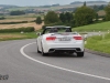 Il serait tentant – j’en eut personnellement l’à-priori – de considérer le différentiel Quattro Sport comme un gadget, mais c’est une erreur. Il confère à la RS5 Cabriolet un équilibre remarquable en appui. La différence entre le réglage Drive Select Comfort et Dynamic du composant transfigure le comportement de la RS5. D’un naturel sous-vireur, elle devient ainsi incisive dans ses appuis, parfaitement équilibrée entre les deux trains. L’effet de torque vectoring est moins prononcé qu’il m’était apparu sur la RS4 Avant, la RS5 reserre moins sa ligne lorsqu’on charge l’arrière en sollicitant le couple maxi du 4.2, mais elle carve de manière réjouissante et permet de s’extraire du virage dans une transition parfaite entre accélération latérale et longitudinale. Si le revêtement est lisse et la courbe assez rapide pour être négociée entre 4 et 6000 t/min à la corde, la RS5 délivre alors le meilleur d’elle-même, une expérience sportive digne du badge RS. Un ou deux jappements en descendant un ou deux rapports avec la palette gauche, un freinage mordant et consistant, la franchise de la prise d’appui tout en prenant soin à ne pas être trop gourmand sur le grip des roues avant, accélération généreuse dès la corde et braaammmm, le vrombissement du V8 courant vers la zone rouge suivi du passage éclair du rapport suivant. La RS5 Cabriolet a ses moments de brillance lorsque des conditions particulières sont réunies.