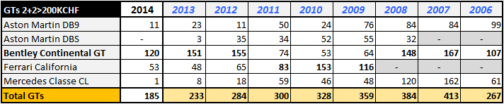 Le vieillissement du portefeuille d’Aston Martin a un effet significatif sur les ventes. La Bentley Continental GT maintient des volumes solides, alors que la nouvelle Ferrari California T ne semble pas redonner du lustre au modèle.