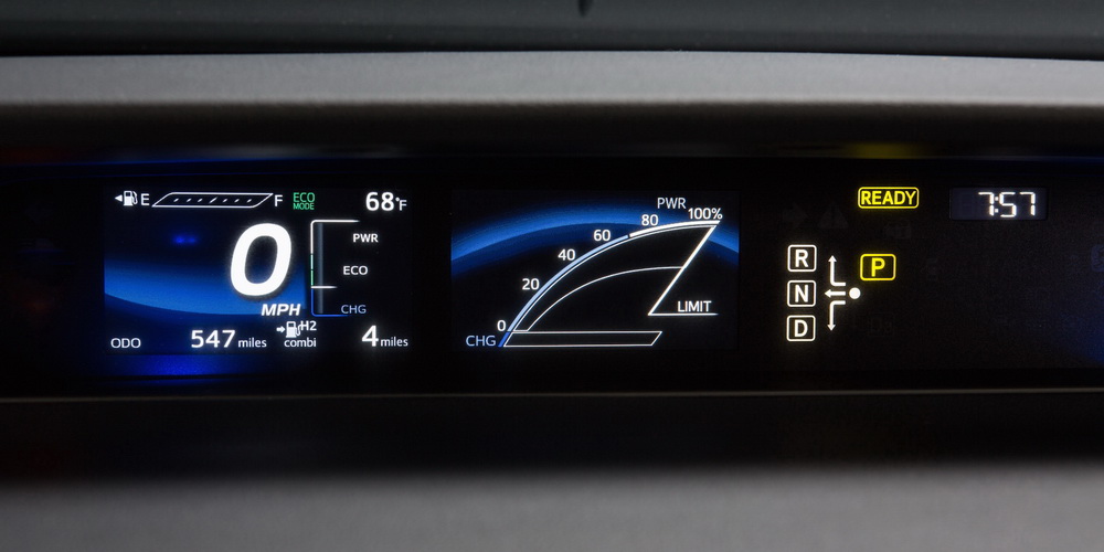 Toyota est également actif dans le domaine avec la Mirai. A la différence de l’ix35, la Mirai n’est pas la conversion d’un modèle conventionnel, mais une conception dédiée. Elle utilise deux réservoirs d’hydrogène, 60L à l’avant et 62.4L à l’arrière, alimentant une pile à combustible d’une puissance de crête de 155ch. La pile fournit son courant à une batterie NiMH reliée à un moteur électrique développant 335 Nm de couple et 154ch. La Mirai est relativement imposante avec 4,890 mm en longueur (empattement de 2780 mm) pour 1,815 mm en largeur et 1,535 mm en hauteur. Son poids est annoncé à 1,850 kg. La Mirai ne sera commercialisée en Europe en 2015 qu’en Allemagne, au Royaume Uni et au Danemark, avec d’autres marchés à suivre en 2016. Avec un prix annoncé à 66,000 € hors TVA en Allemagne, la Mirai sera considérablement plus chère que l’ix35 Fuel Cell. Toyota aborde son plan de production avec prudence: des 700 unités prévues pour 2015, la production mondiale sera de 2000 exemplaires en 2016 et 3,000 en 2017.
