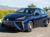 Toyota est également actif dans le domaine avec la Mirai. A la différence de l’ix35, la Mirai n’est pas la conversion d’un modèle conventionnel, mais une conception dédiée. Elle utilise deux réservoirs d’hydrogène, 60L à l’avant et 62.4L à l’arrière, alimentant une pile à combustible d’une puissance de crête de 155ch. La pile fournit son courant à une batterie NiMH reliée à un moteur électrique développant 335 Nm de couple et 154ch. La Mirai est relativement imposante avec 4,890 mm en longueur (empattement de 2780 mm) pour 1,815 mm en largeur et 1,535 mm en hauteur. Son poids est annoncé à 1,850 kg. La Mirai ne sera commercialisée en Europe en 2015 qu’en Allemagne, au Royaume Uni et au Danemark, avec d’autres marchés à suivre en 2016. Avec un prix annoncé à 66,000 € hors TVA en Allemagne, la Mirai sera considérablement plus chère que l’ix35 Fuel Cell. Toyota aborde son plan de production avec prudence: des 700 unités prévues pour 2015, la production mondiale sera de 2000 exemplaires en 2016 et 3,000 en 2017.