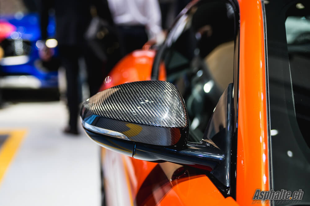 Jaguar ne s’est pas contenté de remapper son V8 pour extraire 20 Nm et 25 chevaux supplémentaires. L’aérodynamique a été travaillée avec un bouclier avant et une lame proéminente, un fond plat, un aileron rétractable en carbone et un diffuseur arrière. Les amortisseurs et les barres anti-roulis de la R sont remplacés. La ligne d’échappement spécifique en titane et inconel de 0.6mm d’épaisseur renforce le caractère sonore de la F-Type et amène un gain de poids de 16kg. En option (9’980 CHF), les freins en carbone céramique réduisent les masses non-suspendues de 21kg. La monte pneumatique est majorée de 10mm avec des Pirelli PZero en 265/35/ZR20 à l’avant et 305/30/ZR20 à l’arrière. L’éventail de jantes forgées proposées amène un gain de poids pouvant atteindre 13.8kg.