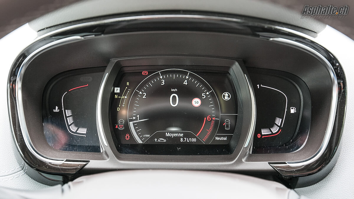 Côté moteur, nous avons le choix entre deux diesels et un essence. Les premiers développent respectivement 130 ch et 160 ch pour des couples de 320 Nm et 380 Nm respecrivement. Le moteur à essence de notre voiture de test cube 1.6 litres de cylindrée, il est dérivé du moteur turbo à injection directe de la Clio 4 Renault Sport et développe 200 ch à 6000 t/min pour un couple maxi de 260 Nm dès 2500 t/min. A noter que seuls les deux moteurs les plus puissants sont disponibles en exécution Initiale Paris. Une boite automatique à double-embrayage avec 7 rapports (6 pour la version diesel) est le seul choix offert.