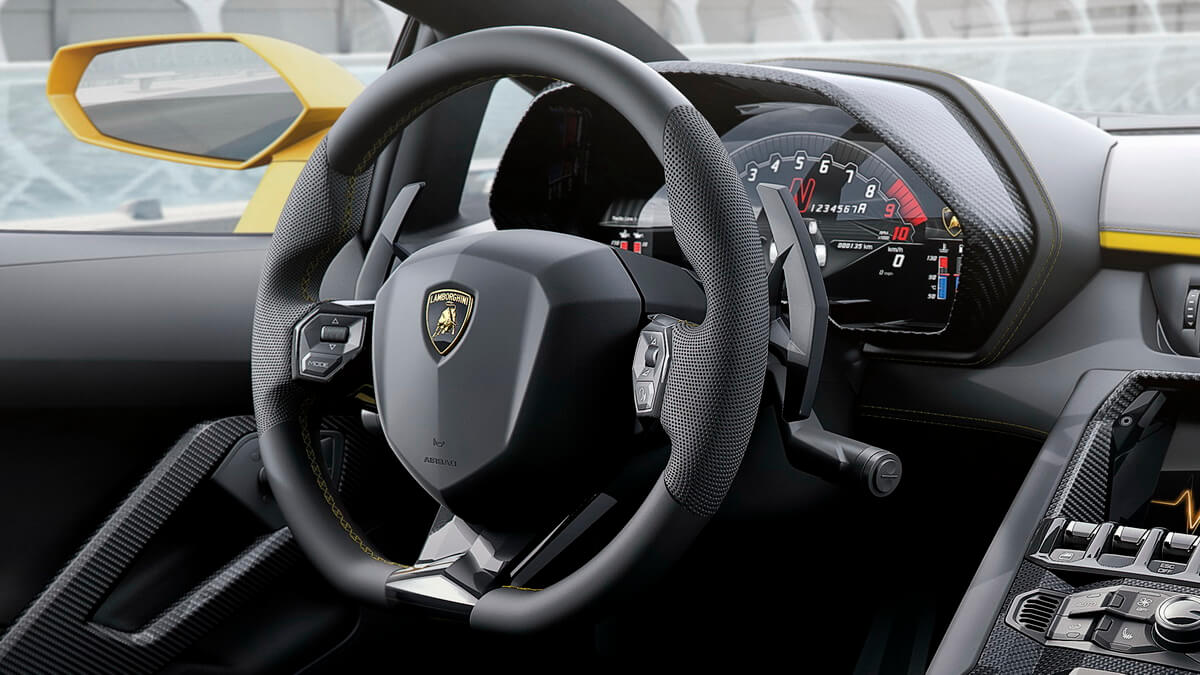 Par rapport à l’Aventador “de base”, le V12 de 6.5L gagne 40 chevaux, atteignant ainsi 740 chevaux pour un couple maxi de 690 Nm à 5500 t/min. Cette deuxième valeur est identique au couple maxi de l’Aventador SV (essai, vidéo), mais la puissance inférieure de 10 chevaux, respectant ainsi la logique de gamme. Le 0-100 km/h est revendiqué en 2.9 secondes, et la vitesse de pointe de 350 km/h. Lamborghini a développé une nouvelle ligne d’échappement pour la S, avec un poids réduit de 20%, une sonorité retravaillée et trois tubulures de sortie.
