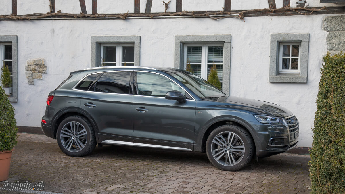 Sur la même boucle d’essai partant de la périphérie d’Aarau vers le col du Staffelegg, l’ancien Q5 TDI 190 ne démérite pas. C’est surtout l’isolation phonique du compartiment moteur qui me surprend, positivement. Le 2.0L TDI émet un grondement sourd qu’on pourrait presque attribuer à un moteur essence, sans le “gnak gnak gnak” audible sur le nouveau modèle selon la position de l’accélérateur et le régime. Je ne connais pas la raison exacte de cette singularité.