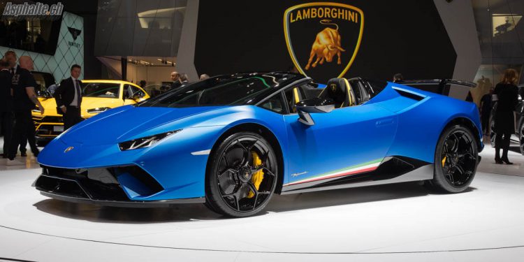 La sensation du stand Lamborghini au salon 2017 était la première de la Huracan Performante. Un an plus tard, la version Spyder apparait sous les projecteurs et les flashes des photographes. La recette est prédictible, les technologies du coupé mariées au Spyder Huracan.