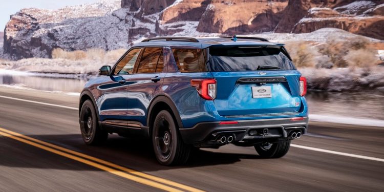 En option, les ST Street Pack et ST Track Pack ajoutent des jantes de 21 pouces montées en pneus 275/45, des disques de freins majorés, des étriers de freins rouges. Ford n’énumère pas de modifications du châssis, et la hauteur de caisse reste inchangée par rapport aux autres versions de l’Explorer. Un écran LCD de 12.3 pouces pour l’instrumentation fait partie de la dotation de série, tout comme le Class III Trailer Tow Package qui permet une charge tractée de 2268 kg (5000 lbs).