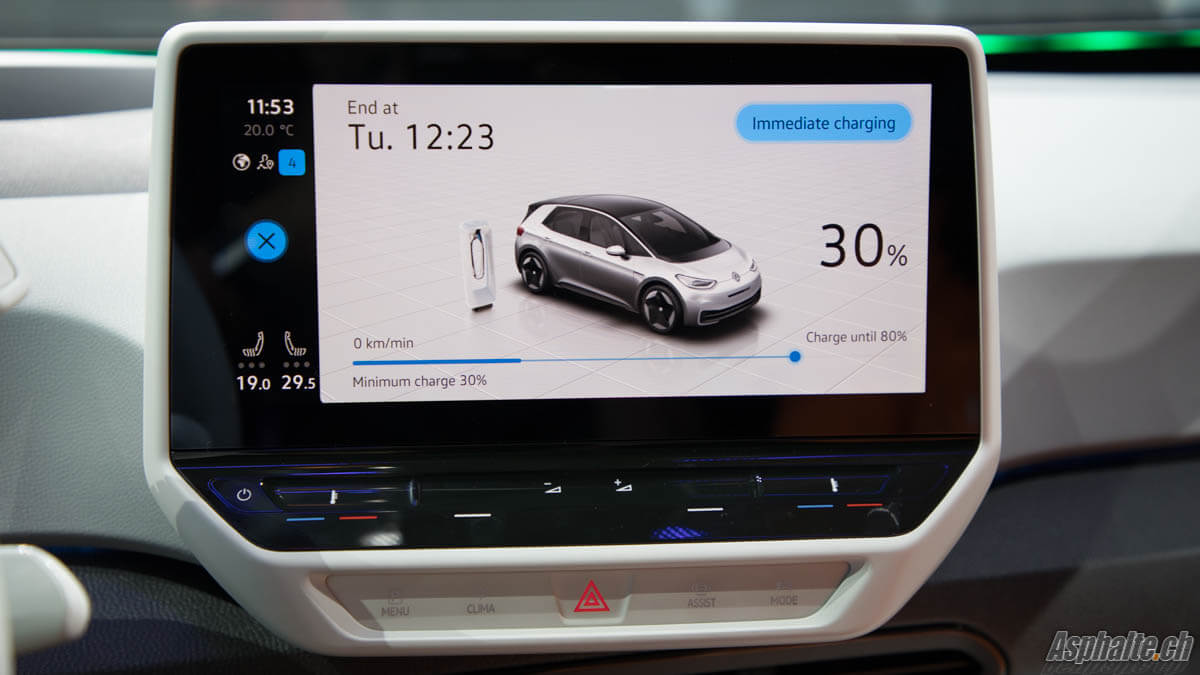 – ID.3 1st Max: en sus, affichage tête haute Augmented Reality, système audio Beats, toit panoramique, guidage de ligne, sièges confort, chargeur de smartphone inductif et jantes de 20 pouces. Le prix de cette version sera d’environ 54’000 CHF selon VW Suisse.